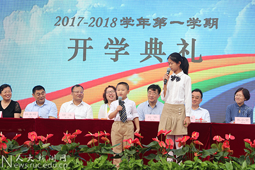 9月1日,庆祝中国人民大学建校80周年“践行新校训,铸就百年梦”——人大附小2017-2018学年第一学期开学典礼在附小主校区操场举行。