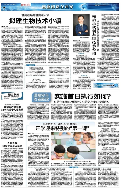 【西安日报】西安交大90后小伙创办3D技术公司 成我省创新创业大赛该领域第一名