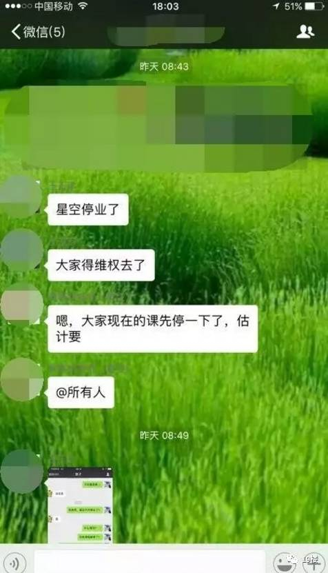 通知称:“各位同学,非常抱歉地通知大家,这两天发生了大量门店聚集事件,我们也一直在和投资人沟通,由于目前管理团队已经不持有星空股份,所以一直在等待股东的决策,但基于目前情况,原股东无法确认新的追加资金,因此我们从2017年9月2日起暂停全国所有门店营业,其他等待进一步通知!”。