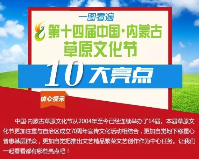 今年正逢内蒙古自治区成立70周年。本届草原文化节无论在内容题材的选取和创作方向等方面都紧扣70年来内蒙古发生的可喜变化,通过文艺精品记录“建设亮丽内蒙古,共圆伟大中国梦”的生动实践。