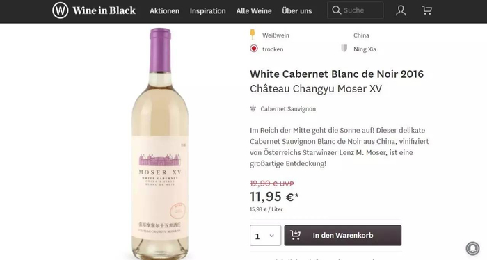 Wine in Black是德国一家专门销售高档葡萄酒的网上商店,其倡导以最简单的方式购买高档葡萄酒。对于引进的张裕摩塞尔干白,他们表示:“中国这颗葡萄酒新星正冉冉升起!这款可口的赤霞珠干白来自中国,由罗斯·摩塞尔先生酿造,是一个伟大的发现!”