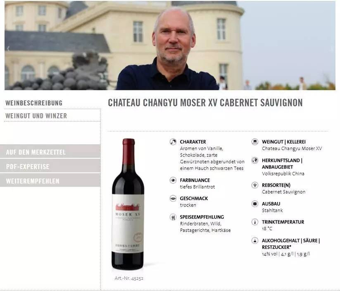 MACK & SCHÜHLE是德国一家专门做葡萄酒和烈酒贸易的零售商,在其官网上,对张裕摩塞尔十五世酒庄酒的两款葡萄酒进行了详细的介绍: