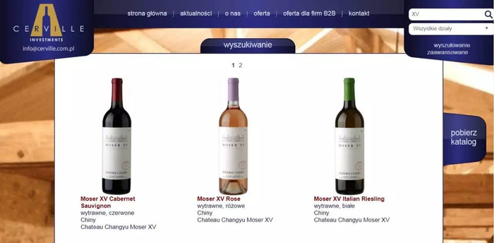 波兰CERVILLE 上售卖的酒都是来自世界各地最好的葡萄酒。对于所销售的张裕摩塞尔十五世酒庄赤霞珠干红,他们表示:“酒液色泽呈深宝石红色,看起来十分令人惊艳。闻起来有香草、巧克力味的气味。细细品味起来,你还能感觉到令人惊叹的柔滑感弥漫在齿间。它口感优雅细腻,余味悠长。”