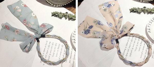 灰蓝或者浅粉的底色上恰到好处地点缀小雏菊等碎花图案,这样的发带洋溢满满少女心。