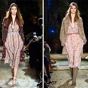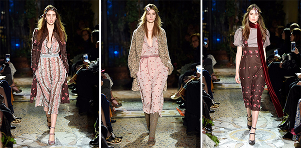 2017米兰秋冬时装周上Luisa Beccaria用花环与碎花裙打造的“田园姑娘”。