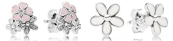 Pandora“诗花绽放”与“珍爱雏菊”款耳钉。