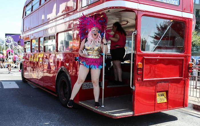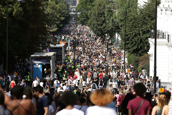 嘉年华活动参加者穿过诺丁山区的5公里长的街道。