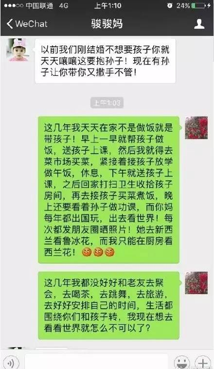 @没腰的丸子:不管聊天记录真假,但是,自己也知道带孩子辛苦干嘛还非逼人家生孩子呢?要是这孩子是媳妇儿自己要生的,肯定不会这样死要婆婆带的