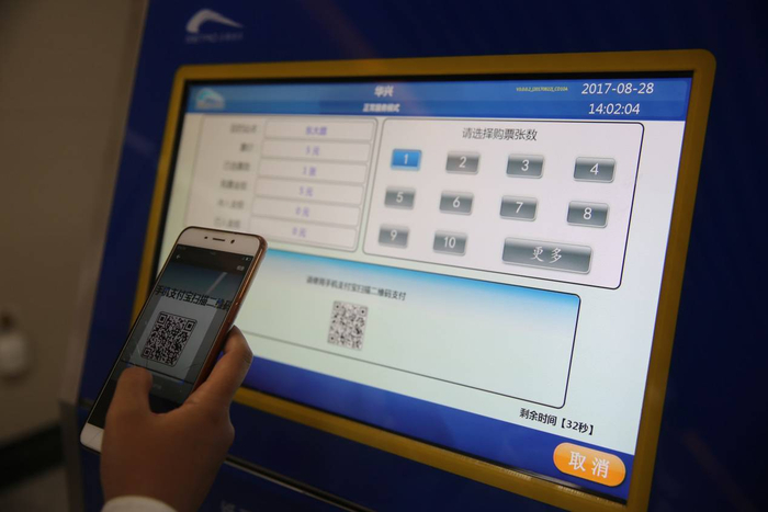 经四川发布客户端记者现场试用发现,在站点的自主购票机上,可采用现金、储值卡、支付宝、微信等在内的4种支付方式购票。其中,支付宝和微信都可以通过扫码的形式进行支付。