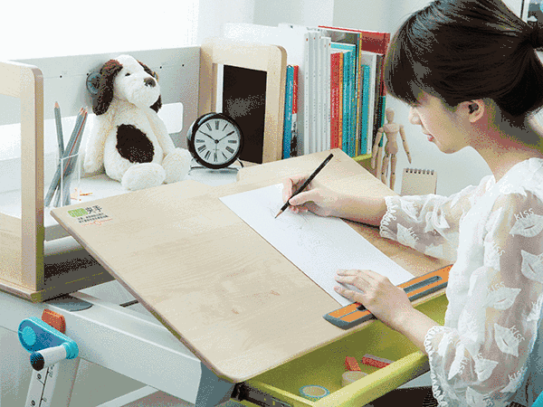 阅读、绘画、书写时对桌面的高低和角度会有不一样的需求。这样,就不用让身体迁就桌子,头部和脊柱就不容易累了。
