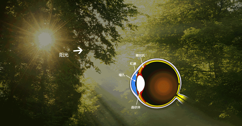 瞳孔的缩放带动着晶状体、睫状肌、虹膜等眼部器官的收紧和放松。