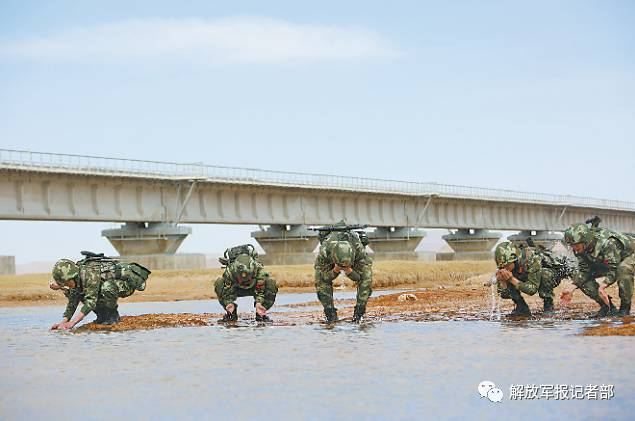 巡逻途中,官兵用冰冷的河水冲洗一天的疲惫。