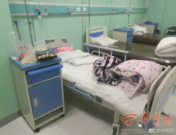 9月4日下午,记者在马某的所住的待产床上看到,马某的待产床上被子仍保留原样,床旁柜上巧克力、苹果等食物原封不动的放置着。而马某跳楼的地点系分娩中心内对门的备用手术室,备用手术室的地面上一双拖鞋孤零零的摆放着,窗台上有警方取证过的痕迹。