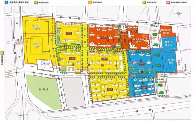 全运村由运动员村、媒体村和技术官员村三村构成