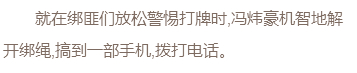 之后,冯炜豪也被“绑匪”捆了起来。图为仓库里,冯炜豪被“绑匪”绑了起来。