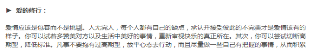 几乎爱情中所有的弱点都是藏在争执里的。B小姐每次和男友起冲突,很多时候都是控制不住自己的完美主义,这其实在一次次挑战对方的耐心,不断把自己的弱点放大,直到对方接受不了想要逃。