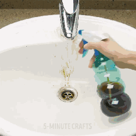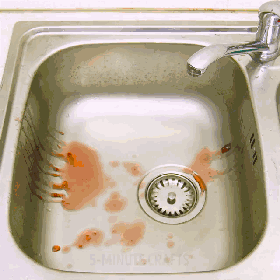 水槽粘上蔬果汁脏脏的,不用大开水龙头浪费水,套上一个剪了孔的小气球,就变成个简易水管,还你一个洁净水槽。