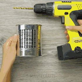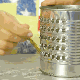 在铁罐一侧按规律打上孔,再用螺丝将孔往外撬,你就能获得一个擦丝器!