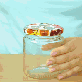 找不到合适的盖子,气球来上阵。吹大的气球在罐子上方放气,气放完气球也就直接盖在罐子上了。