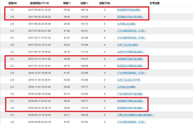 通过在中国地震台网上搜索塌陷地震,从去年9月8日以来,中国大陆共有17次地震记录显示震源深度为0千米,震级多为3级左右。而陕西省内的塌陷地震显示有6次。
