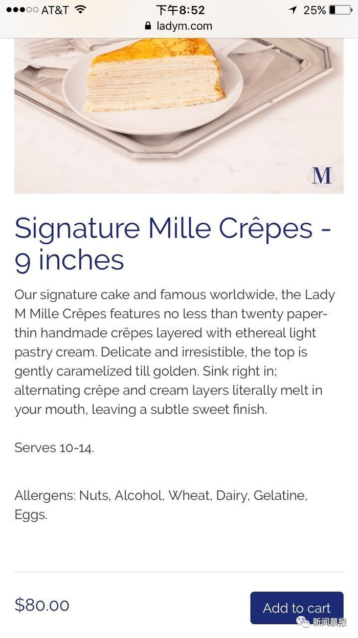 相比一下,美国整只9寸的千层蛋糕报价是80美元,价格怎么差这么多?