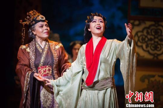 中新网唐山9月5日电(记者 白云水)原本是中国名著《红楼梦》里的人物贾宝玉和林黛玉,如今,以英文唱着咏叹调和花腔女高音,来到曹雪芹家乡的舞台上演绎着女怨男痴的爱情故事。