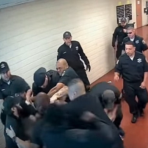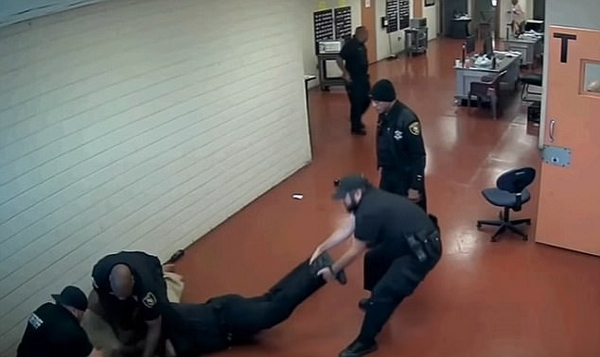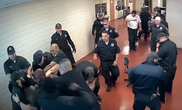 美囚犯无故袭警遭19名狱警回击被制服 场面火爆
