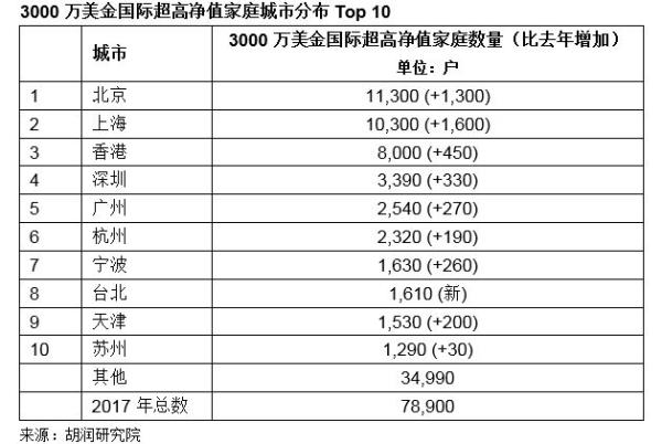 3000万美金国际超高净值家庭分布
