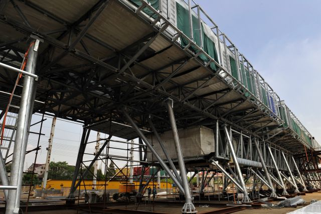8月25日,巴西费拉兹站预拼装后的外观图片。(新华社记者张建松摄)