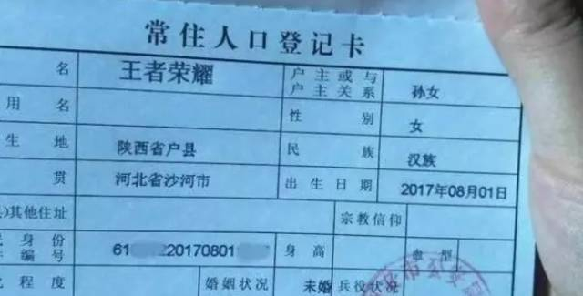 实力坑娃!父亲给新生儿取名“王者荣耀”,还是个女孩子!