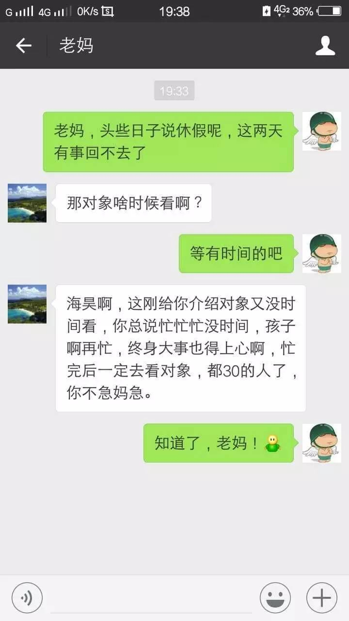 这刚给你介绍对象又没时间看,你总说忙忙忙没时间,孩子啊再忙,终身大事也得上心啊,忙完后一定去看对象,都30的人了,你不急妈急。