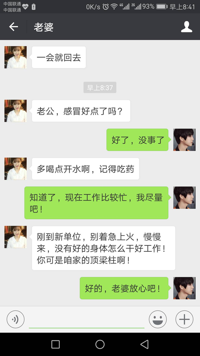 刚到新单位,别着急上火,慢慢来,没有好的身体怎么干好工作!你可是咱家的顶梁柱啊!