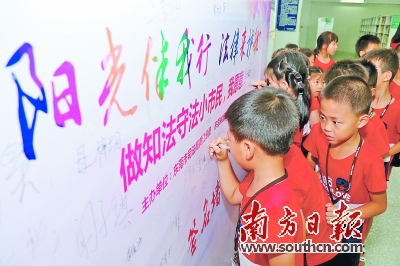 7月26日,东莞裕盛鞋业有限公司康体中心十分热闹,“阳光伴我行 法律来护航”裕盛职工子女普法教育活动正在举行,活动由黄江司法分局主办,裕盛80多名6至14岁的员工子女参加了活动。此次活动,不仅达到了给孩子普法的目的,还为裕盛公司法治文化建设奠定了基础。