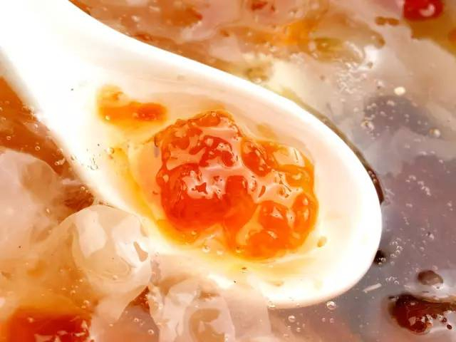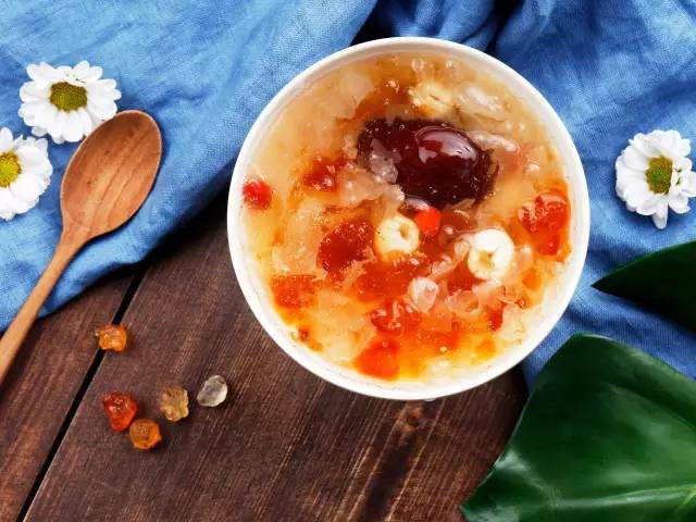 银耳和桃胶都是富含植物胶质的食物,炖出来的桃胶银耳莲子羹,口感爽滑,吃后回甘,可以滋阴养颜。