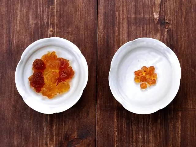 晒干后的桃胶是一小颗一小颗的,只要五六颗(15g左右),泡发后,就够一个人食用了。
