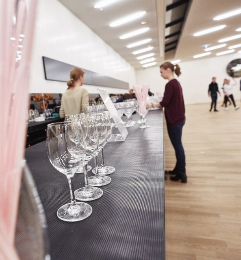 单是易北爱乐就有6个酒吧间。最大的一个酒吧间设计了超长的吧台,服务员一溜排开,观众沿着吧台排队,不用等太久就能享受到酒水服务。