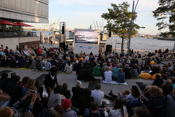 当晚汉堡的温度不到二十度,冷风劲吹,仍有上千位市民和游客身穿防风衣、羽绒服,自发汇聚于此。