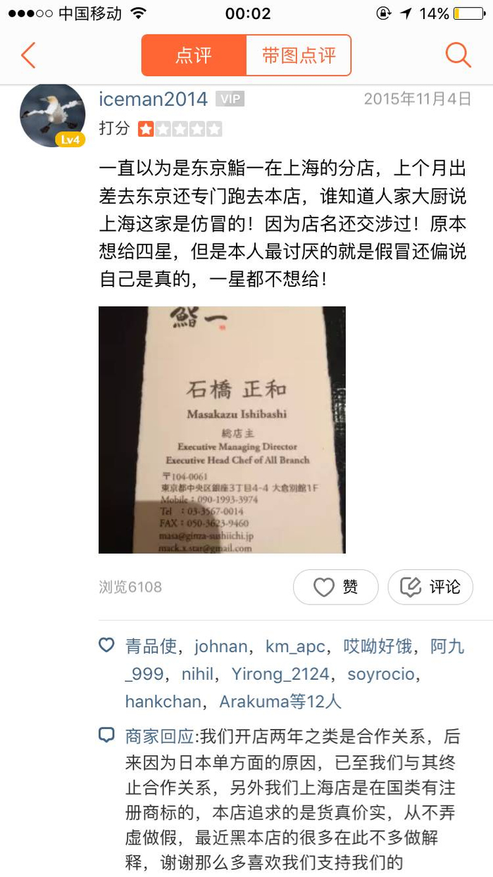 貌似上海“鮨一”早前也受到过类似质疑...