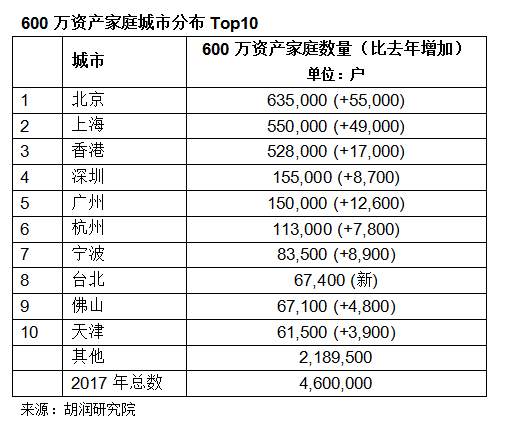 北京拥有最多600万资产家庭、亿万资产超高净值家庭和3000万美金国际超高净值家庭;