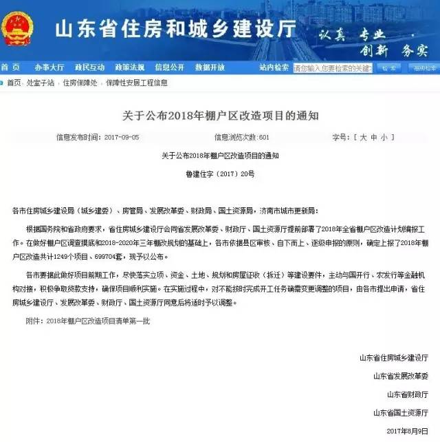 ↑山东省住建厅网站公布2018年棚户区改造计划。(点击查看大图)