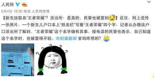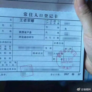 “父亲把新生孩取名【王者荣耀】,成功上户口。”9月4日,一个普通的户口本在微博上火了。户口本上写着登记人的姓名为:王者荣耀,出生日期为:2017年08月01日,性别:女。在户口本的右下端盖着西安市公安局未央区三桥派出所的户口专用章。