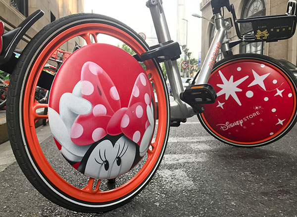 2017年8月28日,上海,摩拜生产的米奇米妮共享单车。 东方IC 图