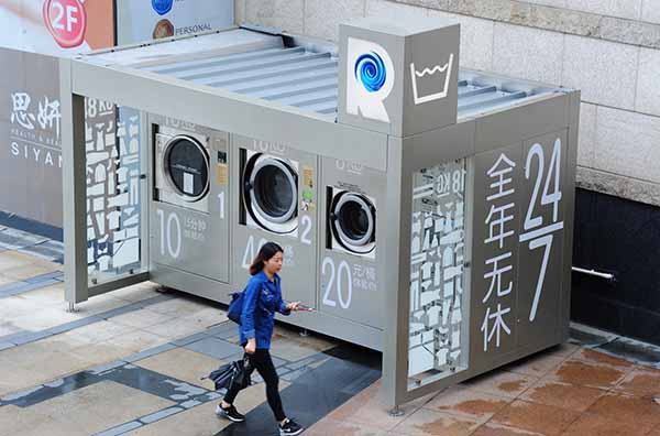 上海市徐家汇一商业广场前的“共享洗衣机”。 东方IC 资料图