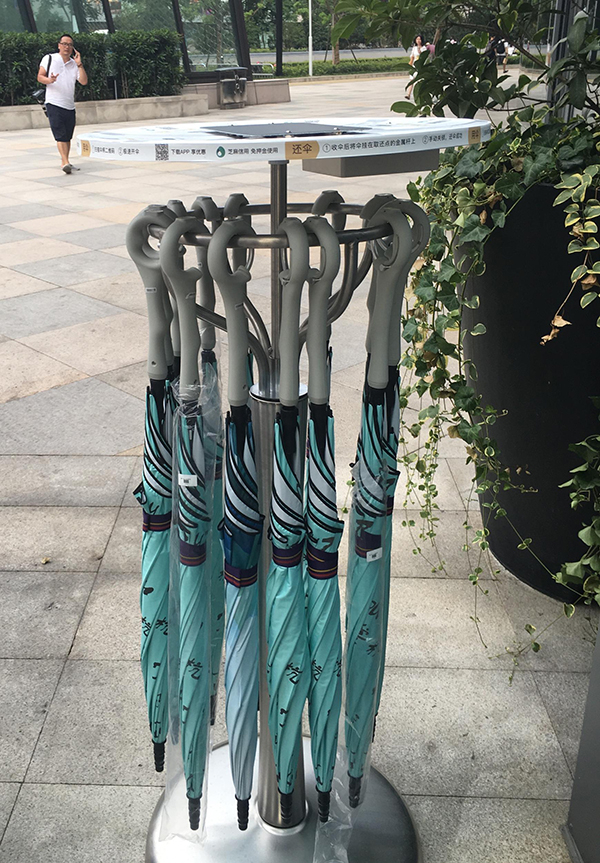 2017年8月19日,杭州,共享雨伞企业浙江摩簦网络科技有限公司创始人贾勇宣布,未来一个月内将在深圳、杭州各投入摩簦共享雨伞各3万支,智能桩1500个。
