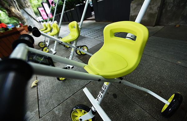 成人出行用共享汽车、共享单车,小朋友自然也有相应的共享溜娃小车。