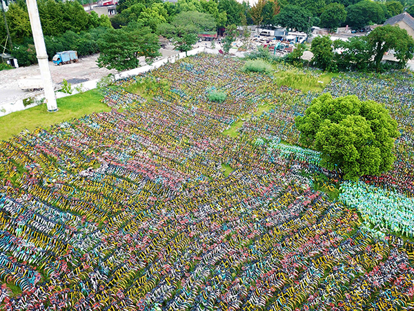 2017年8月30日,杭州,上万辆共享单车被弃之荒野。视觉中国 图