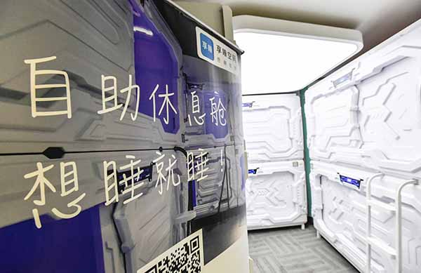 2017年7月,北京,中关村出现的“共享睡眠”。所谓“共享睡眠”与多年前出现的胶囊旅馆极为相似,只是交易方式改为扫码睡觉、按分钟计费。 东方IC 资料图