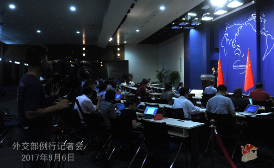 原标题:2017年9月6日外交部发言人耿爽主持例行记者会