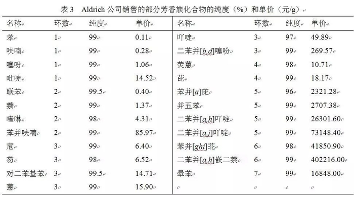 人工合成缩合芳香族化合物往往需要经历诸多步骤,因而缩合芳香族化合物的价格居高不下。表3所示的芳香族化合物都是煤及其衍生物中存在的化合物。作为化学试剂,这些化合物基本上随着芳环数的增加售价急剧增加;对于同环数的芳香族化合物而言,含杂原子的芳香族化合物的售价远高于芳烃的售价。例如,同是二环芳香族化合物,苯并呋喃的售价分别是联苯和萘售价的214.9和62.8倍;同是五环芳香族化合物,二苯并[a,j]吖啶的售价是苯并[a]芘售价的31.5倍;同是缩合芳烃,苯并[ghi]苝的售价分别是萘和蒽售价的30548.1和2632.1倍。从煤中还可以直接分离或者通过定向转化得到更多附加值更高的精细有机化学品。因此,煤作为获取高附加值的有机化学品(特别是缩合芳香族化合物)的原料利用得天独厚。