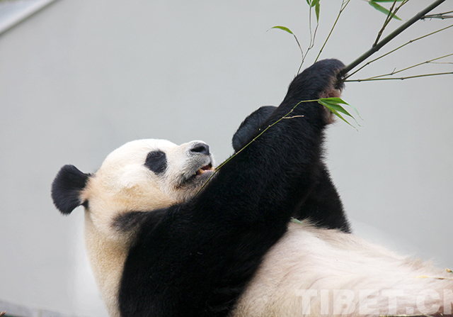 在生活区内大熊猫有很多器具可以锻炼“功夫”。